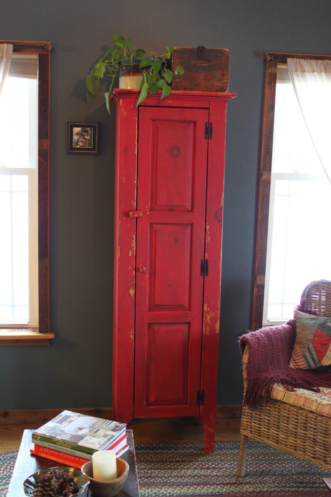 In my plans for redoing our sitting room I really wanted to paint this tall jelly cabinet that we bought unfinished many years ago. I had always wanted to paint it, but just never got around to it.